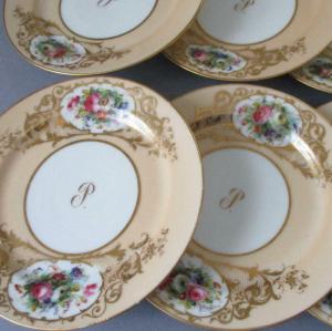 6 Antique 19thC PIRKENHAMMER HP Porcelain 7" Plates FLOWERS w Lush GILT Accents