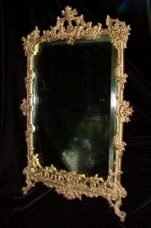 ANTIQUE VICTORIAN ORNATE VANITY DRESSER BEVELED MIRROR GILDED CAST METAL