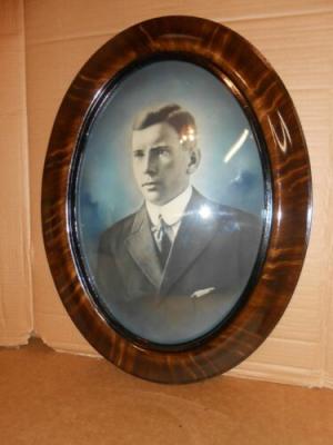 Large Vintage Tin & Brass Metal Convex Bubble Glass Picture Frame 20”