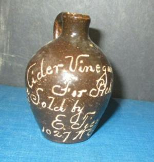 Antique Vintage STONEWARE MINI SCRATCH BROWN JUG CIDER VINEGAR E138 PL