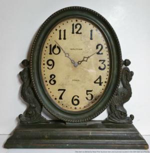 Antique Waltham 8 Days Heavy Bronze Mantel Clock Figural Dolphins Fish