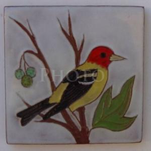 McKusick Gila Pottery Western Tanager 4" Tile - Piranga ludoviciana