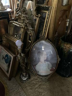 VINTAGE GOLD HOLLYWOOD REGENCY SYROCO STYLE MIRROR OIL CANVAS PICTURE FRAME
