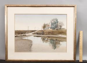 Antique MERVIN CORNING Realist California Country Landscape Watercolor Painting
