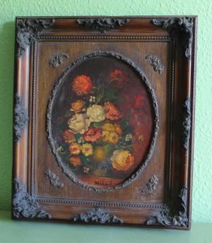 ANTIQUE/VINTAGE FLORAL OIL PAINTING CARVED WOOD FRAME SIGNED MICHEAL