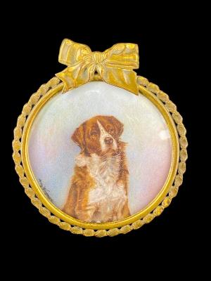 Antique Miniature Painting on Porcelain St. Bernard Dog Signed Amy Wegman Framed