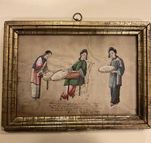 1844 Maine Sea Captain Inscribed Chinese Antique Painting On Rice Paper