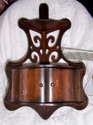 Antique Vintage Wooden Corner Shelf w/ Doors 24" Tall Dark Wood Walnut? Cherry?