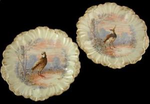 Pair Antique Klingenberg Dwenger LIMOGES FRANCE ARTIST SIGNED GAME BIRD PLATES