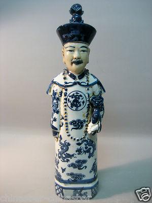 ANTIQUE CHINESE HAND PAINTED BLUE & WHITE PORCELAIN FIGURINE, SIGNED