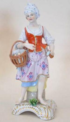 Superb antique Sitzendorf Meissen Era porcelain statue female figurine
