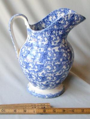 LARGE BLUE SPONGEWARE PITCHER 19TH / 20TH C. OVOID BULBOUS NR