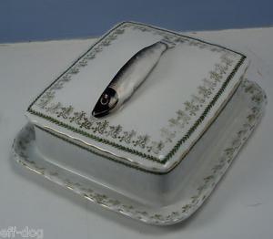 ca 1918 Antique VICTORIA Austria Covered Sardine Box 3D Sardine Handle Majolica?