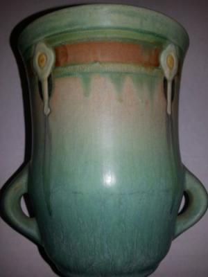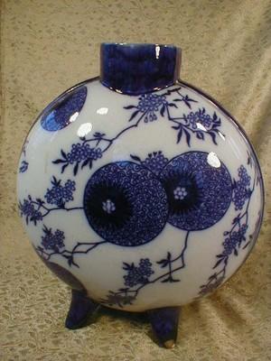 RARE 14" Pottery Flask Vase - Persian Spray one Side, Blue Willow other side