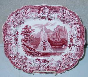 1830s Staffordshire Enoch Wood Red transferware Fountain Platter Serving Tray