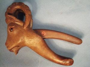 OLD "Black Forest" WOOD Carved FIGURAL NUTCRACKER Mountain GOAT,Glass Eyes NR!