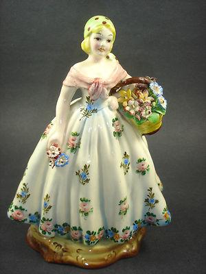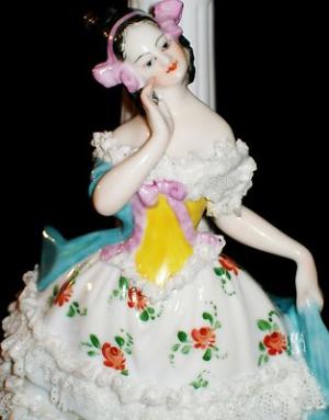 Antique Italian Porcelain Capodimonte Lady Dresden Lace Figurine