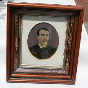 Victorian Antique Picture Frame Tiger Striping Stripes Convex Glass