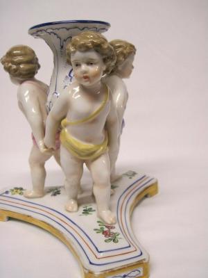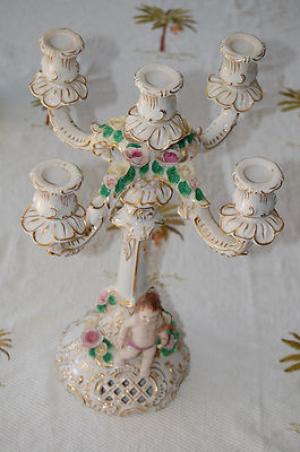 ANTIQUE DRESDEN PORCELAIN PUTTI CANDELABRA