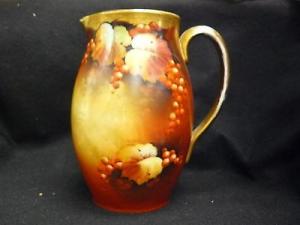 Handpainted W A Pickard Beautiful Leaf and Berry Pitcher, Hohenzollarn Germany