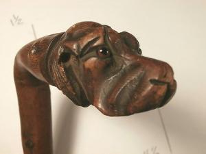 Antique Carved Wood American Folk Art BLUE TICK HOUND HEAD CANE /WALKING STICK