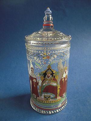 Vintage Enameled Glass Covered Jar German Cities & Citizens Excellent