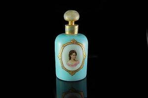 ANTIQUE FRENCH OPALINE GLASS PORTRAIT SCENT COLOGNE PERFUME BOTTLE NR 7