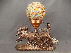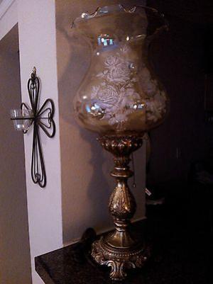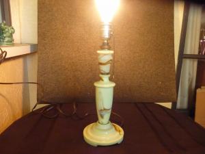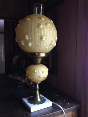 VINTAGE YELLOW -GREEN SLAG GLASS LAMP WITH CARAMEL SWIRL