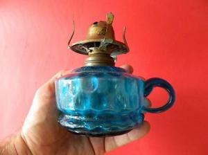 Auction 1 Dimpled Blue Glass Finger Bedside Oil Lamp English Burner c1900