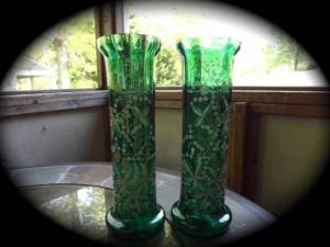 Antique LEUNE Signed ART GLASS VASE Hand Painted IVY & BERRIES French Very Large