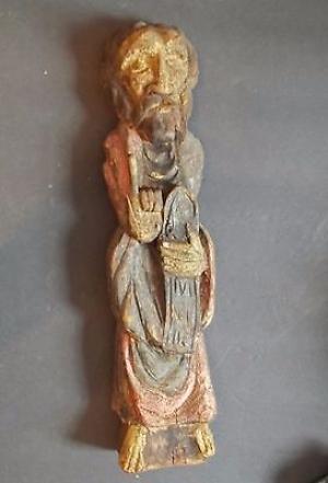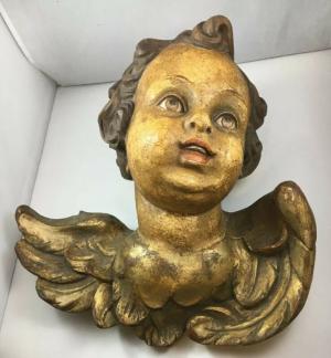 Antique Angel Cherub Brown Eye Head wings Wooden Hand Carved Sculpture Figure #2