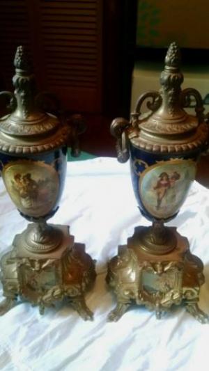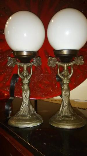 Exquisite Pair of Antique Art Nouveau figural spelter 16" table lamps