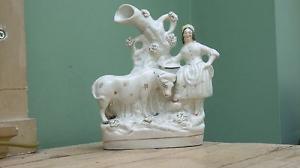 SUPERB 19thc PARR STAFFORDSHIRE PORCELLANOUS MILKMAID & COW SPILL C.1850