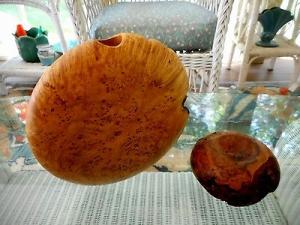 TWO (2) Hinged BURLWOOD BOXES / 5 & 8 INCH WIDE / Good Condition / +*+*+*