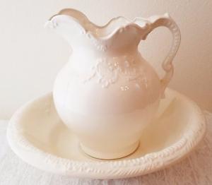 LOVELY LARGE VINTAGE VICTORIAN STYLE IVORY PITCHER & BOWL WASH BASIN SET