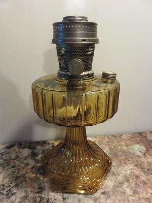 VINTAGE OLD ALADDIN KEROSENE LAMP AMBER CORINTHIAN MODEL B BURNER