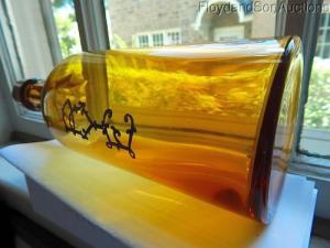 1800s Light Golden Yellow Amber Saloon Back Bar Rye Bottle Set Silver Overlay