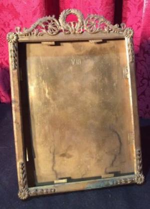 BEAUTIFUL ORNATE ANTIQUE FRENCH BRASS & BRONZE EASEL BACK PICTURE FRAME