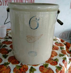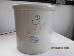 Vintage 1900s 3 Gallon Red Wing Crock with Red Wing Stamp & Blue Stamp
