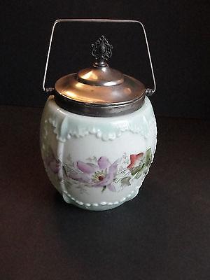 Antique Victorian Biscuit Jar, Floral Motif, Wavecrest?