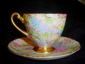 SHELLEY England Tea Cup & Saucer ROCK GARDEN Chintz Pattern EXCELLENT!