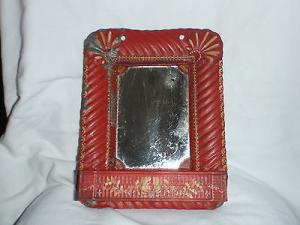ANTIQUE PAINTED TIN SHAVING MIRROR FOLK ART PA DUTCH