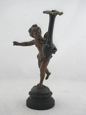 Antique Auguste Moreau France Bronze Figure Of Cupid Statue Cherub Vase Signed