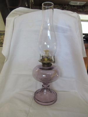 Antique Purple Glass Oil Lamp with wick & Chimney Excellent Condition