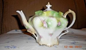 EARLY RSP RS PRUSSIA TEAPOT BEAUTIFUL FLORALS WITH ENAMEL DOTTING ART NOUVEAU