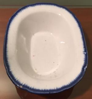 Antique Creamware Blue Feather Edge 5-1/2” Oval Bowl - Incised Mark - 1830s