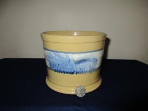 Antique 19th C Stoneware Yellow Ware Mocha Seaweed Banded Crock Jar Bowl 5 1/8"