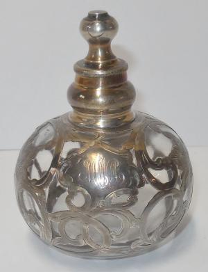Vintage Silver Overlay Art Nouveau Glass Perfume Scent Bottle Antique