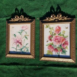 Antique Vintage Wooden Picture Frames Black with gold - pair