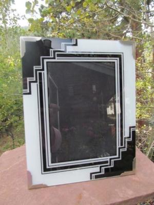 Art Deco Black / Silver / Gold Reverse Painted Picture Frame Beveled